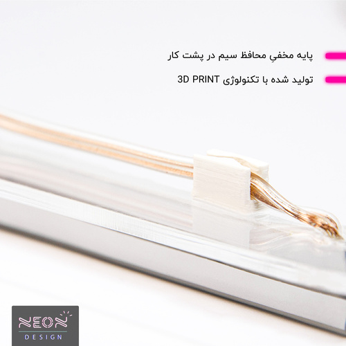 در این تابلو نئون از ورق فوق شفاف کریستالی آکریلیک استفاده شده است. هرچند که تمامی قطعات با دستگاههای پیشرفته صنعتی برش میخورد اما در انتها محصول نهایی بدست استادکاران ماهر ساخته میشود.
