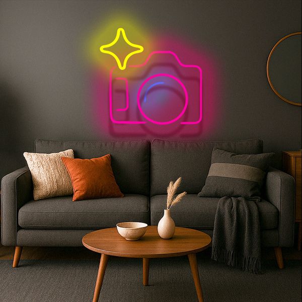 اگر به دنبال یک المان دکوراتیو خاص و متفاوت هستید که هم حس هنری داشته باشه و هم فضای شما رو روشن و پرانرژی کنه، تابلو نئون طرح دوربین عکاسی انتخابی بینظیره. این تابلو با طراحی خلاقانه دوربین کلاسیک و نورپردازی رنگی، مناسب برای اتاق خواب، کافه، آتلیه، یا حتی دفتر کار شماست.